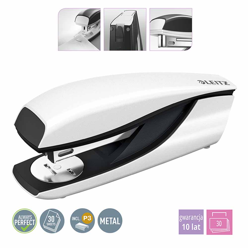 Zszywacz Leitz 5502 WOW NeXXT mieści do 100 zszywek 24/6 lub 140 zszywek 26/6, a dzięki zintegrowanemu rozszywaczowi i obrotowej stopce, zmiana zszywania z otwartego na zamknięte jest niezwykle prosta. Dodatkowo, ergonomiczna konstrukcja oraz poręczny kształt sprawiają, że zszywanie staje się szybkie i bezwysiłkowe.