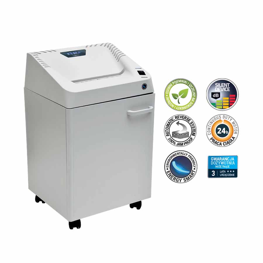 Niszczarka została wzbogacona o funkcję niszczenia plastikowych kart, zszywek oraz spinaczy, co czyni ją wszechstronnym narzędziem, które sprosta różnorodnym potrzebom biurowym. Szeroka szczelina wejściowa jest idealnie dostosowana do dokumentów formatu A4, co zapewnia wygodę użytkowania i oszczędność czasu. Dzięki zaawansowanemu systemowi tnącemu, który posiada 5-letnią gwarancję, można być pewnym, że urządzenie spełni swoje zadanie przez długi czas, niezawodnie chroniąc poufne informacje. Dodatkowo, diody LED informujące o przegrzaniu lub przeciążeniu urządzenia zwiększają bezpieczeństwo i wydajność pracy.