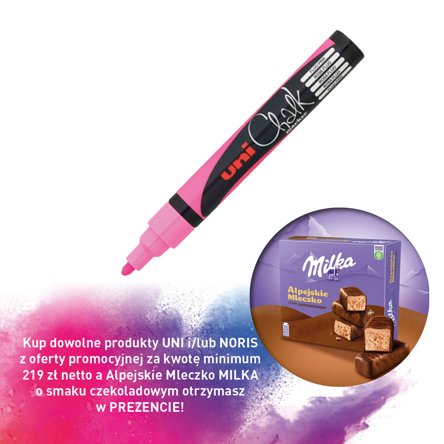 jm.: Kup dowolne produkty UNI i/lub NORIS z oferty promocyjnej za kwotę minimum 219 zł netto a Alpejskie Mleczko MILKA o smaku czekoladowym otrzymasz w PREZENCIE!