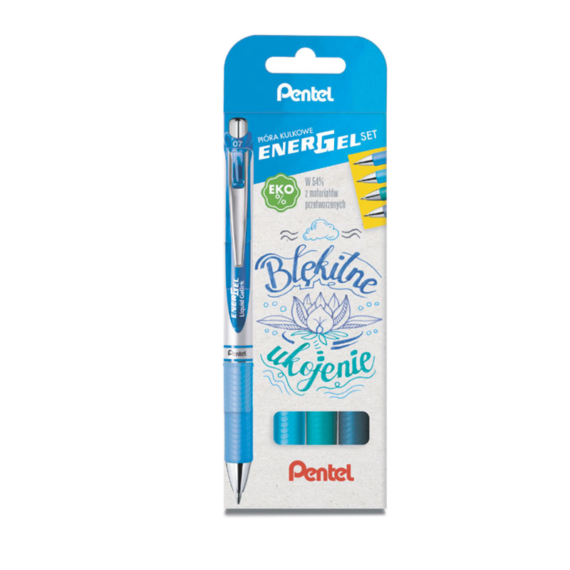 Cienkopis kulkowy Pentel EnerGel BLN75 jest wykonany w 54% z materiałów przetworzonych, co czyni go ekologicznym wyborem dla każdego, kto dba o środowisko.