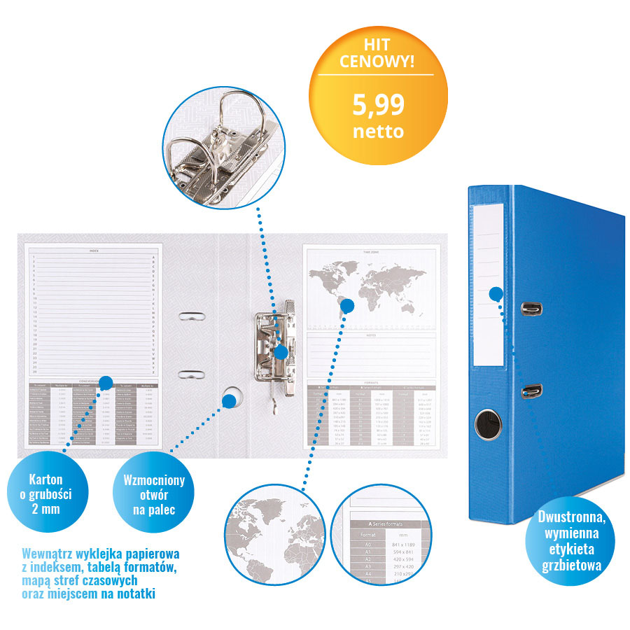 mieści różne kombinacje pudeł i segregatorów (max. 8 segr.A4/70 mm lub 6 pudeł 100 mm)
