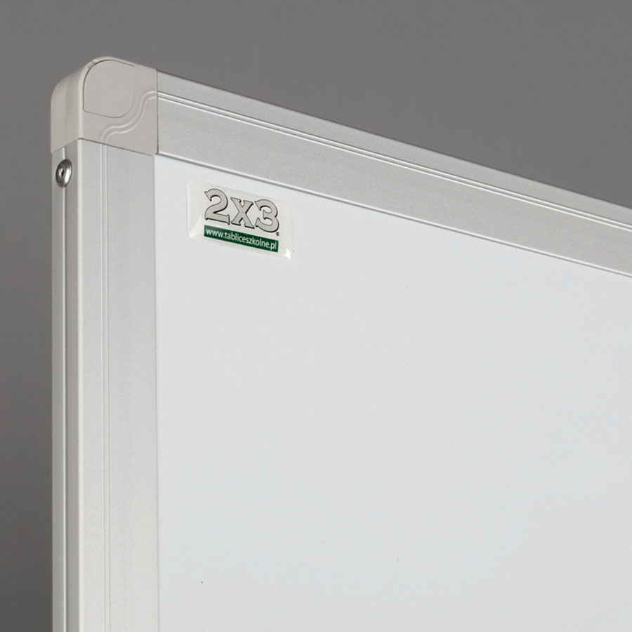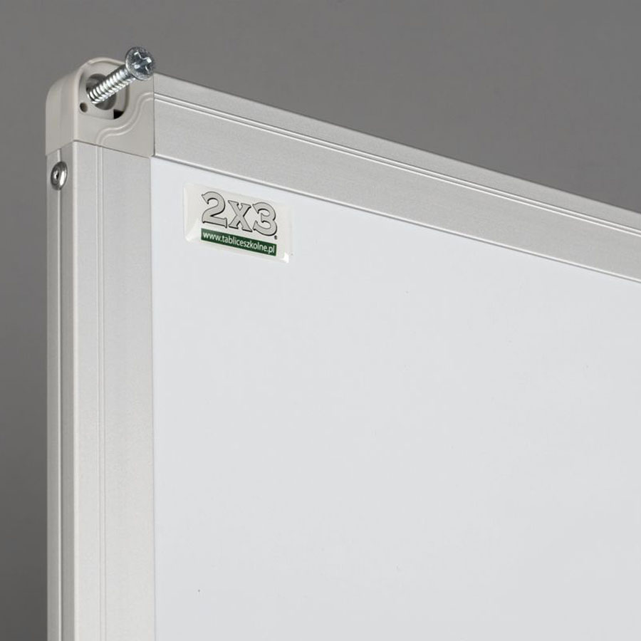 Tablica została wyposażona w ramę z profilu aluminiowego UKF w kolorze srebrnym, elegancko wykończoną popielatymi narożnikami, które dodają jej nowoczesnego charakteru. Tył tablicy został wzmocniony blachą ocynkowaną, co zapewnia stabilność, ochronę przed wilgocią oraz odporność na wygięcia, gwarantując długą żywotność produktu.