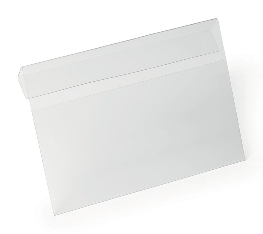 - kieszeń magazynowa wykonana z przezroczystej twardej folii PET z zakładką do zawieszenia na kartonach, pudełkach lub innych pojemnikach