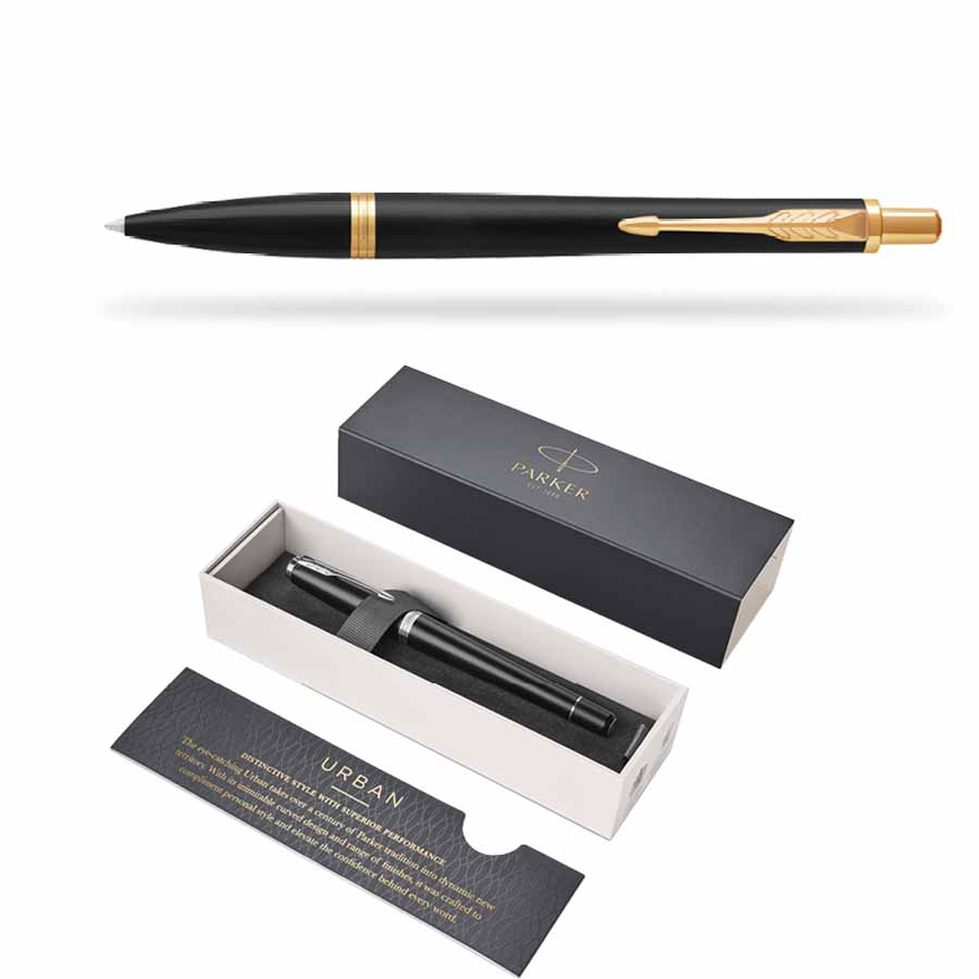Skuwka i korpus pokryte błyszczącym lakierem w głębokiej czerni harmonizują z chromowanymi wykończeniami i eleganckim potrójnym pierścieniem, na którym umieszczono logo Parkera. Pióro wieczne wyposażone w stalówkę ze stali szlachetnej w rozmiarze M zapewnia płynne i komfortowe pisanie, a długopis posiada przyciskowy mechanizm wysuwania wkładu dla jeszcze większej wygody użytkowania.