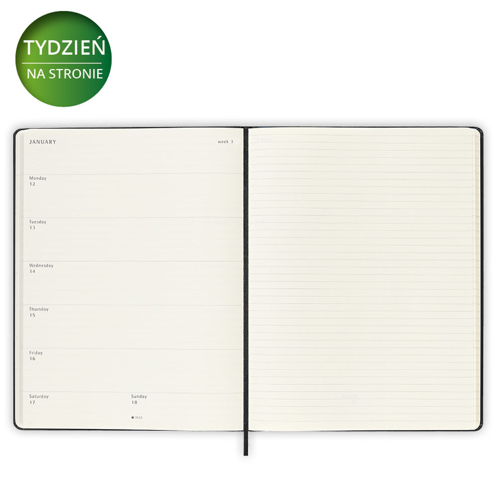 - układ tygodniowy (rozkład tygodnia po lewej stronie a po prawej stronie miejsce na notatki)