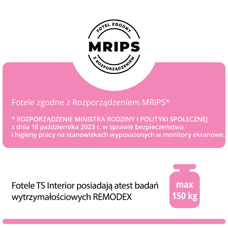- PODPARCIE LĘDŹWI ( podparcie lędźwi jako niezależny element oparcia) regulowane na wysokość oraz głębokość, tapicerowane pianką i tkaniną