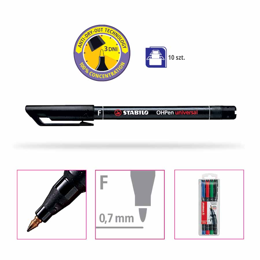 - do pisania po foliach, szkle, plastiku, slajdach, itp.