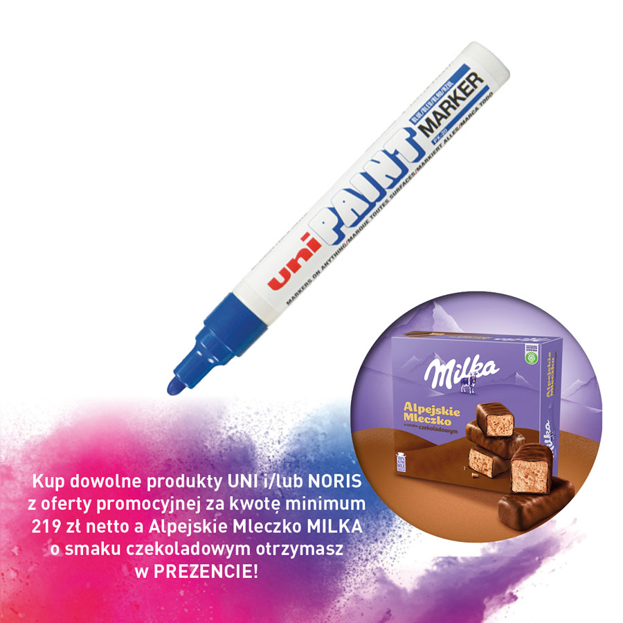 jm.: Kup dowolne produkty UNI i/lub NORIS z oferty promocyjnej za kwotę minimum 219 zł netto a Alpejskie Mleczko MILKA o smaku czekoladowym otrzymasz w PREZENCIE!