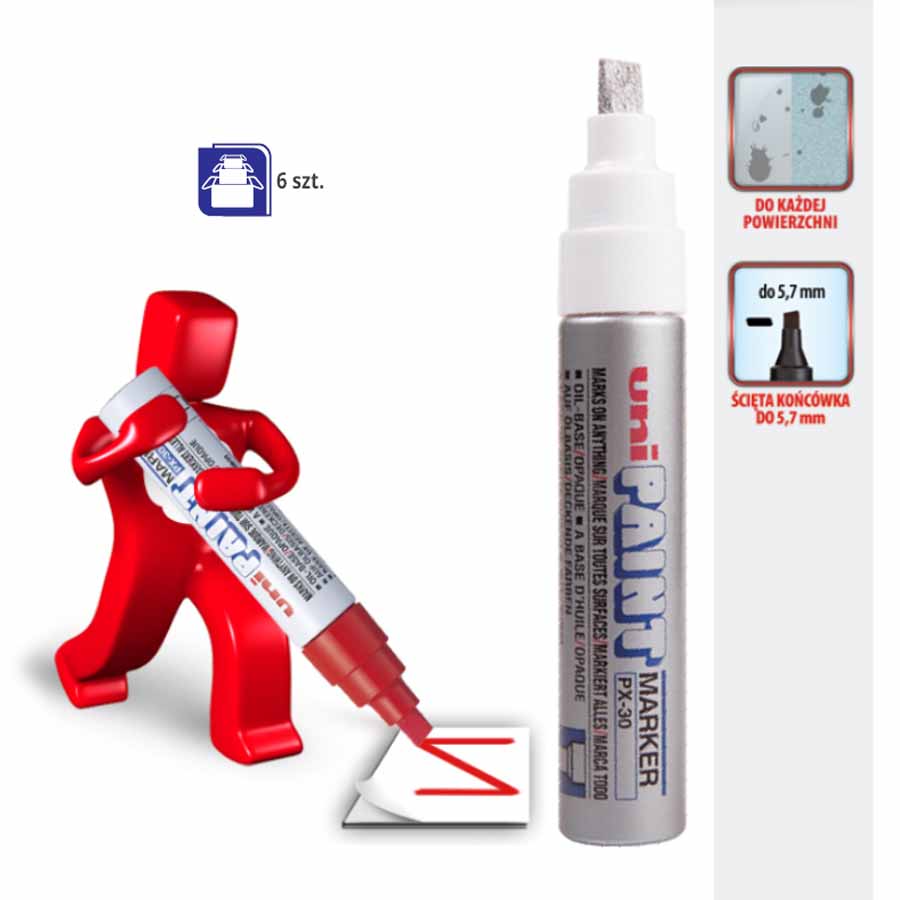 Marker wyposażony jest w okrągłą fibrową końcówkę, która zapewnia równomierne i precyzyjne oznaczenia. Końcówka pompująca pozwala na płynne pisanie, eliminując przerwy w pracy i gwarantując komfort użytkowania.