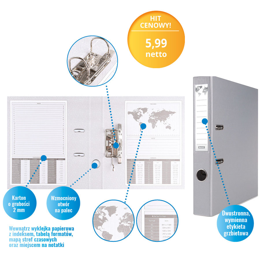 mieści różne kombinacje pudeł i segregatorów (max. 8 segr.A4/70 mm lub 6 pudeł 100 mm)