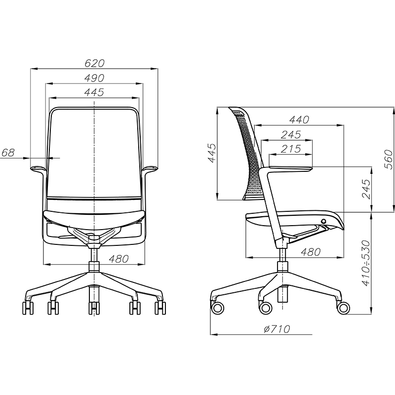 - oparcie oraz główne elementy konstrukcyjne krzesła wykonane są z elastycznego i łatwo zmywalnego syntetyku