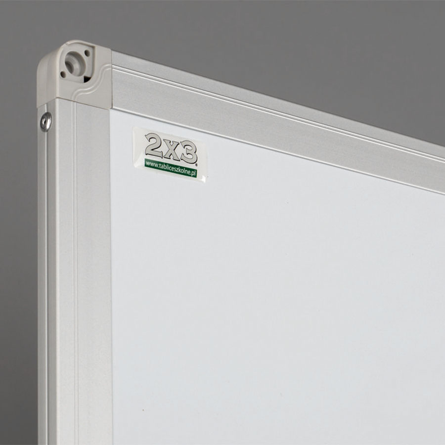 Tablica została wyposażona w ramę z profilu aluminiowego UKF w kolorze srebrnym, elegancko wykończoną popielatymi narożnikami, które dodają jej nowoczesnego charakteru. Tył tablicy został wzmocniony blachą ocynkowaną, co zapewnia stabilność, ochronę przed wilgocią oraz odporność na wygięcia, gwarantując długą żywotność produktu.