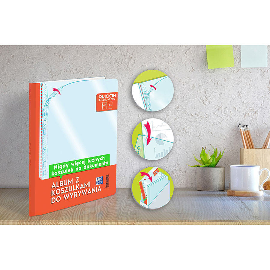 - niezwykle praktyczny album z koszulkami do wyrywania - zajmuje tyle miejsca, co zeszyt A4 - można go włożyć do pojemnika na czasopisma, schować w szufladzie, ustawić na półce lub przenosić w plecaku lub torbie