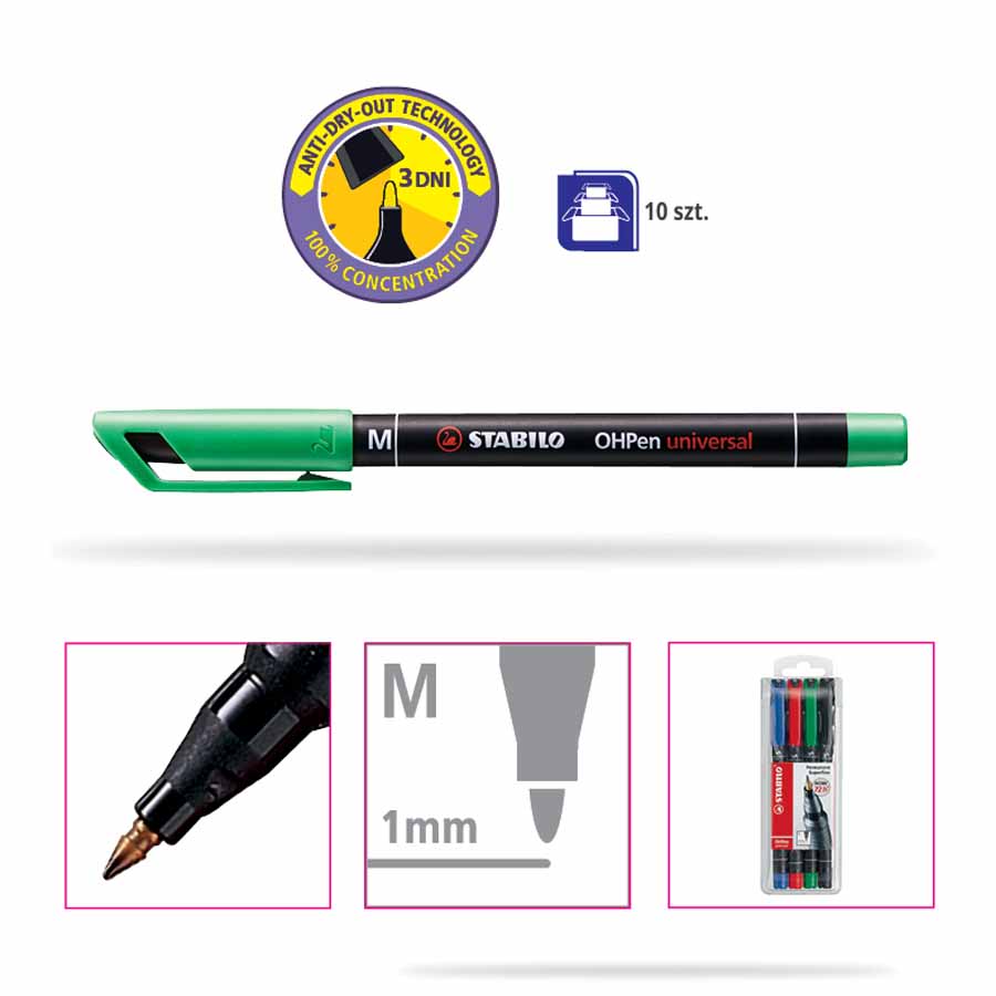 Grubość linii pisania wynosząca 1,0 mm zapewnia wyraźne i czytelne oznaczenia, idealne do ogólnych notatek i rysunków. Dzięki temu foliopis świetnie nadaje się do wielu różnych zadań, gdzie wymagana jest wyrazistość i trwałość.