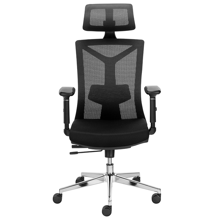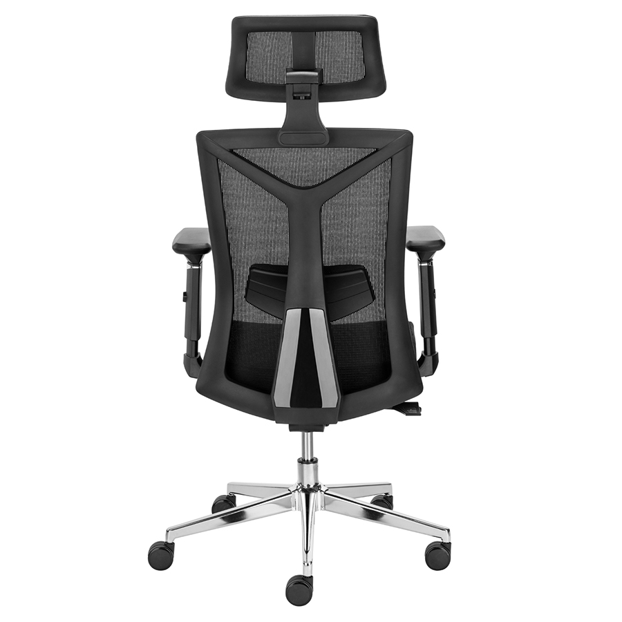 - zagłówek 3D, tapicerowany siatką z możliwością regulacji: przód-tył, góra-dół i kąt nachylenia